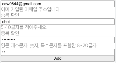 회원가입 기능을 먼저 구현하였는데, 여기서는 지금까지 사용하지 않았던 react-hook-form을 사용하였다. 기존에는 input을 만든 뒤 onChange나 onBlur 그리고 useEffect를 사용하여 input마다 하나씩 적용을 해줘야했다. 그러한 문제들을 react-hook-form의 register함수를 활용하여 코드를 훨씬 줄일 수 있었다. 게다가 이메일 주소나 비빌번호의 정규식 역시 굉장히 쉽게 pattern으로 적용할 수 있었고, error에 따른 메세지도 매우 간단하게 처리할 수 있었다. 글자수 제한도 minLength를 활용하여 쉽게 해결할 수 있었다. 다만 이메일과 닉네임에서 중복체크를 반드시 했어야했는데, 이부분을 onBlur로 자연스럽게 처리하는 부분이 참고할 만한 코드가 없어서 헤메다가 중복확인 버튼을 만들었다. 그래서 중복확인 버튼을 눌러서 중복일 시 메시지를 띄울 수 있도록 하였다. 다만 지금은 핵심기능에 집중하다보니 유저가 중복확인 버튼을 누르기 전에는 회원가입을 못하도록 하는 기능을 추가하지는 못하였다. 그래서 출시하기 전에는 중복확인 버튼을 눌러야만 회원가입 호출이 되도록 할 것이고, 또한 중복확인 버튼을 누르기 전과 누르고 나서 통과됐을 때의 UI 역시 다르게 하여 유저가 확인하게 쉽도록 만들어야겠다. 버튼의 색을 회색에서 통과 시 초록으로 바꾸거나 중복일 시 빨강으로 바꾸는 식으로 말이다. 통과했을 때의 메세지도 띄워야겠다. 지금은 통과를 못할 시에만(중복일 시에만) 메세지가 띄워지고 있다.