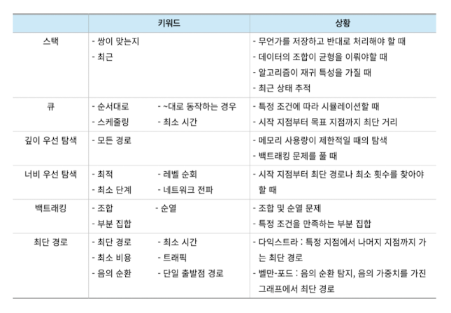 - 핵심 키워드를 파악하여 알고리즘을 선택하자